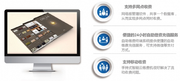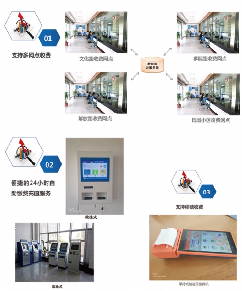 實(shí)現(xiàn)自助繳納水費(fèi)、電費(fèi);支付方式目前支持微信支付,可擴(kuò)展支付寶和銀聯(lián)卡支付;可實(shí)現(xiàn)票 據(jù)打印。產(chǎn)品分為壁掛式、落地式等;可實(shí)現(xiàn)24小時(shí)無(wú)人值守工作;